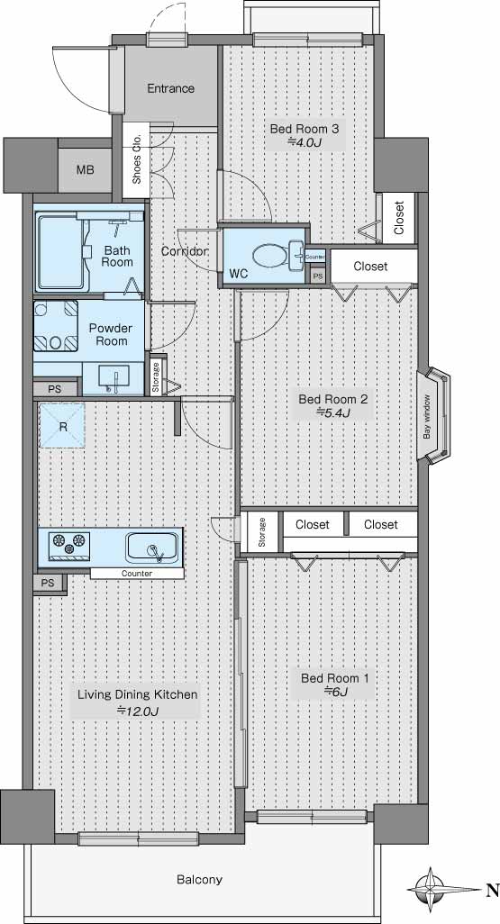 専有面積(壁芯):21.21㎡ / バルコニー面積:2.31㎡